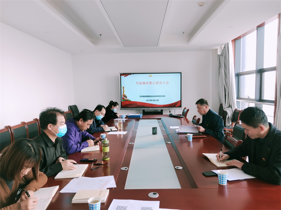 春节将至,为持之以恒正风肃纪,深化巩固落实中央八项规定精神,坚决防止“四风”反弹回潮,确保营造风清气正、崇廉尚俭的良好节日氛围,1月14日,宁东基地管委会社会事务局召开2022年春节前廉政警示教育大会,全体干部职工参加会议。
