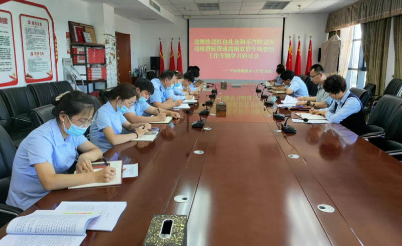为持续纠治“四风”,着力营造风清气正的政治生态和干事创业的良好环境,8月15日,宁东基地服务大厅党支部组织召开违规收送红包礼金和不当收益及违规借转贷或高额放贷专项整治工作专题学习研讨会,大厅党支部全体党员、中心全体工作人员参加。