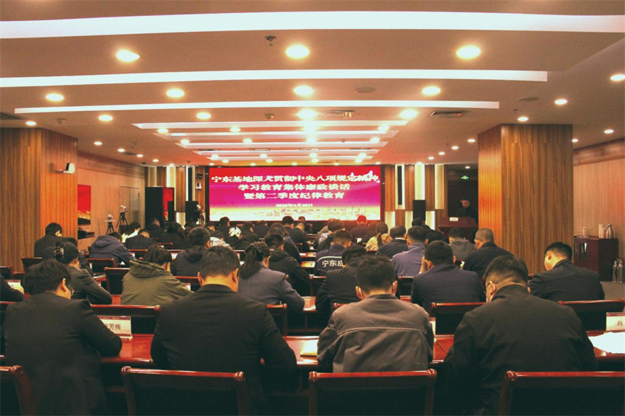 为扎实开展深入贯彻中央八项规定精神学习教育,进一步加强干部作风建设,4月28日上午,宁东基地党工委开展年轻干部集体廉政谈话会及第二季度纪律教育。党工委管委会新提拔干部、年轻干部、关键岗位干部等50名干部职工参加会议。