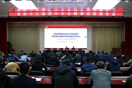 继11月20日自治区党委常委、自治区常务副主席、宁东基地党工委书记、管委会主任张超超同志在宁东基地进行十九届四中全会精神宣讲之后,12月5日,宁东基地党工委举办第二场党的十九届四中全会精神宣讲报告会,邀请自治区党委讲师团的学者对党的十九届四中全会通过的《中共中央关于坚持和完善中国特色社会主义制度、推进国家治理体系和治理能力现代化若干重大问题的决定》进行辅导解读。党工委、管委会领导班子成员,各部门(单位)、直属公司、宁东教育工作办公室、各派驻机构负责人,管委会机关副处级(含非领导职务)以上干部,宁东医院、宁东镇、宁东学校班子成员,管委会部门管理单位主要负责人,管委会、宁东镇机关全体干部职工170余人聆听了报告。