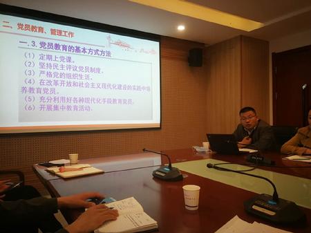 首先组织学习了《中国共产党发展党员工作细则》,解读成为正式党员需要经历五个阶段:申请入党,入党积极分子的确定和培养,发展对象的确定和考察,预备党员的接收,预备党员的教育、考察和转正。针对每一个阶段需要准备的资料和相关要求进行了详细的解读。同时对《中国共产党党员教育管理工作条例》重点内容进行了讲解。