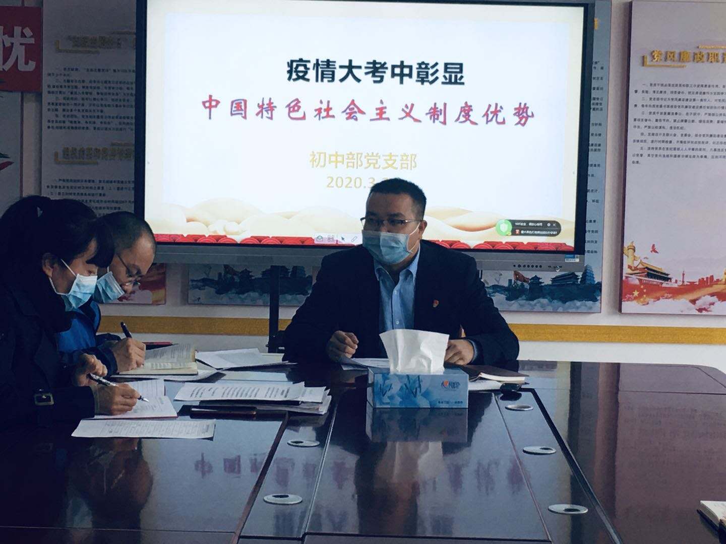 为持续推进教师政治理论学习,提升党员教师政治理论素养,建设学习型党组织,3月31日,宁东学校初中部党支部组织全体党员召开3月份党员大会,进行集中政治理论学习。