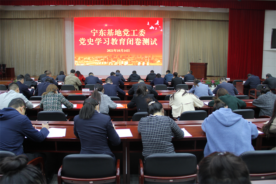 为扎实推动学习贯彻习近平总书记在庆祝中国共产党成立100周年大会上的重要讲话精神,检验和巩固党史学习教育成效。2021年10月13日下午,宁东基地党工委抽取20名厅级、处级和普通党员干部参加了自治区党委党史学习教育第一巡回指导组的测试;10月14日上午,组织党工委、管委会全体机关党员干部,所属基层党(工)委、总支、直属企业班子成员160余人开展学习“七一”讲话应知应会知识测试。