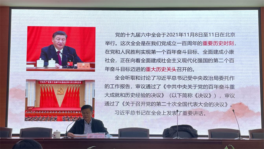 为深入学习贯彻党的十九届六中全会精神,12月31日,宁东基地党工委委员、管委会副主任刘红宁到宁夏宝廷新能源有限公司,为宁东基地党工委党群工作部、宁夏宝廷新能源有限公司和宁夏金维制药股份有限公司60余名党员职工作主题为“深入学习贯彻党的十九届六中全会精神奋力开启宁东基地高质量发展新征程”的主题宣讲。