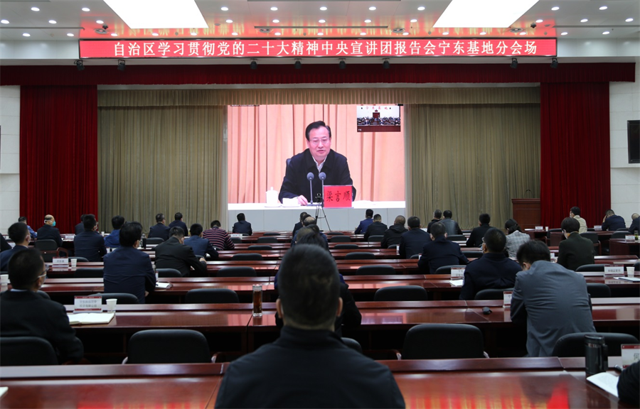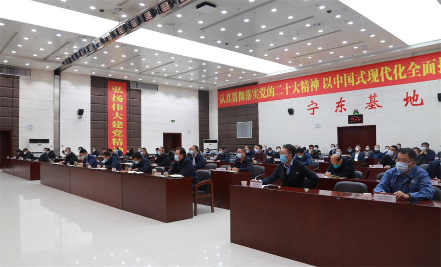 11月11日上午,自治区举行学习贯彻党的二十大精神中央宣讲团报告会,自治区党委书记、人大常委会主任梁言顺作专题宣讲报告。在宁东基地分会场,宁东基地党工委管委会班子成员,各部门(单位)、派驻机构、宁东镇、宁东医院、宁东学校主要负责人、管委会副处级以上干部和宁东基地大中型企业负责人共90余人以视频会议的形式聆听了报告。