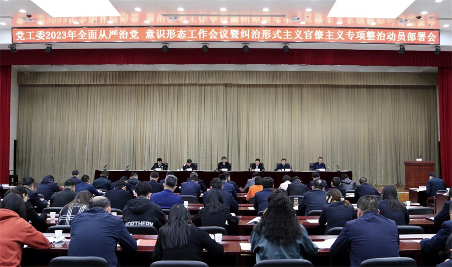 3月15日,宁东基地党工委召开2023年全面从严治党、意识形态工作会议暨纠治形式主义官僚主义专项整治动员部署会议,党工委书记主持会议并讲话,委领导,派出宁东纪检监察工委,各部门(单位)、派驻机构主要负责人,宁东镇、宁东医院、宁东学校、各直属公司班子成员,管委会机关全体党员干部参加会议。