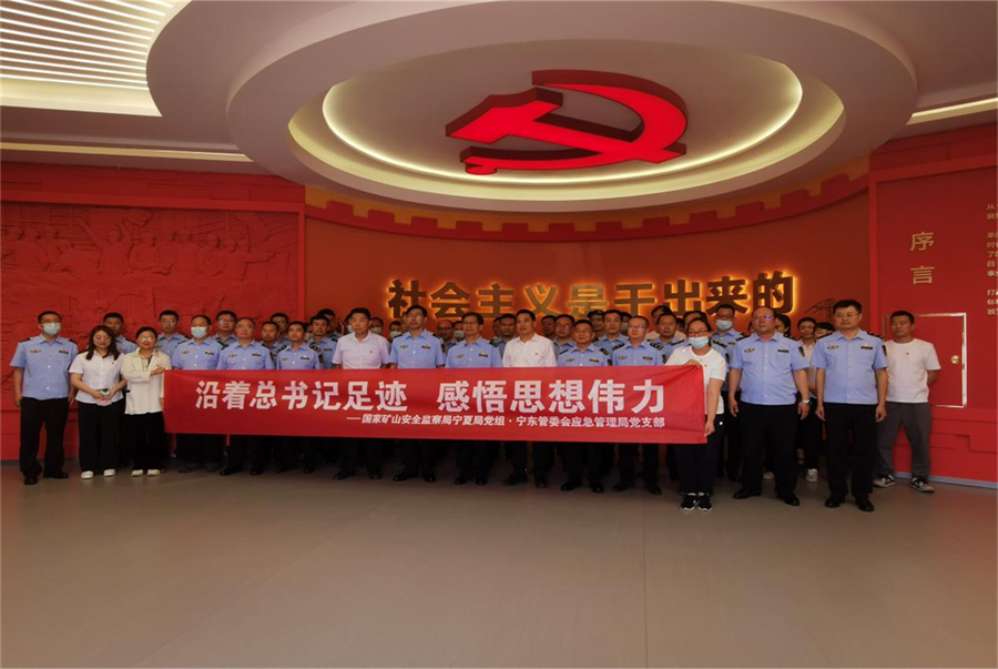 2023年6月9日下午,国家矿山安全监察局宁夏局党组与宁东管委会应急管理局党支部联合开展“沿着总书记足迹 感悟思想伟力”主题党日活动。宁东基地党工委委员、管委会副主任金政伟参加活动。