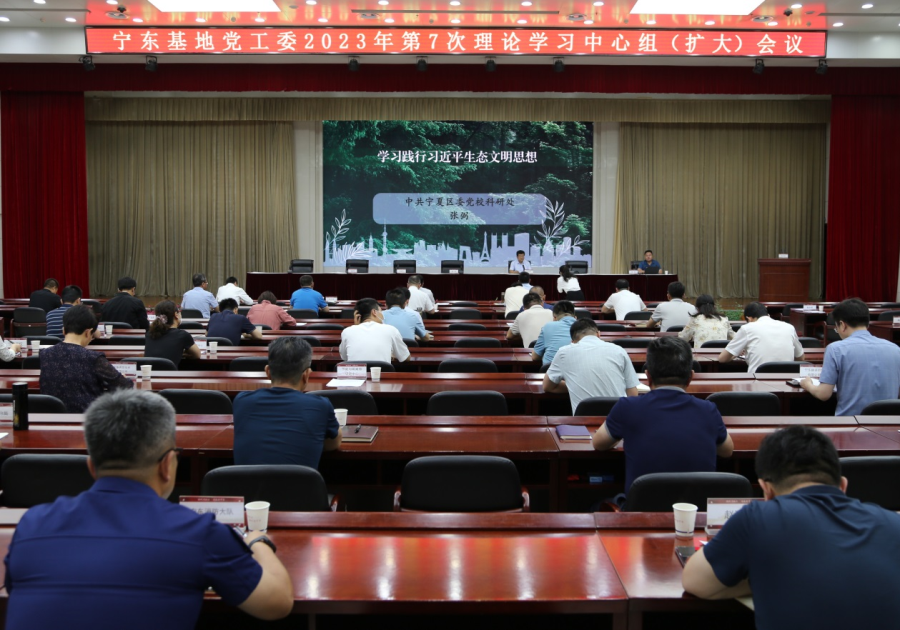6月25日下午,宁东基地党工委召开2023年第7次理论学习中心组(扩大)会议,专题学研习近平生态文明思想。党工委委员、管委会副主任王志军主持会议。