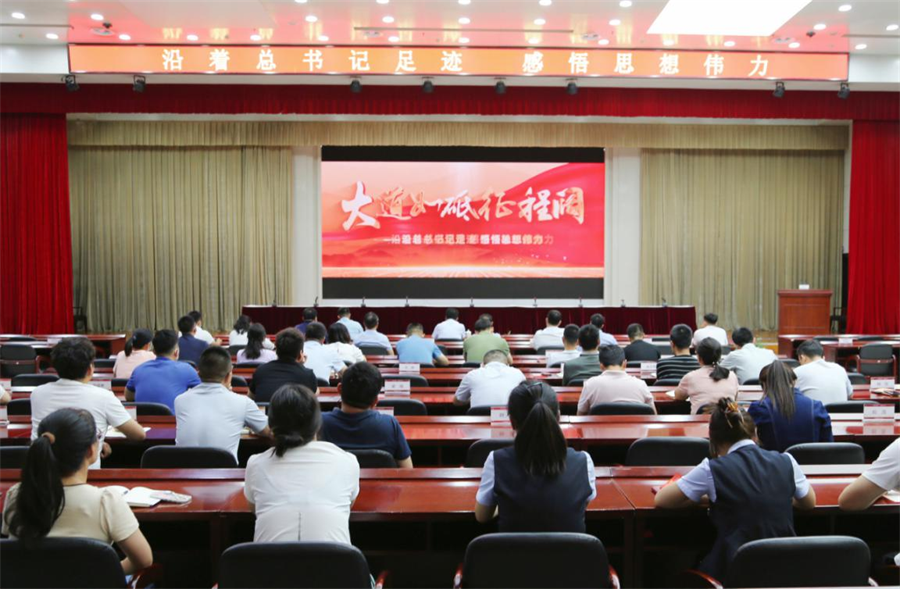 为扎实推进“沿着总书记足迹 感悟思想伟力”主题实践活动,深入开展学习贯彻习近平新时代中国特色社会主义思想主题教育,进一步提升学的深度、悟的水平、践的质量,牢牢把握“学思想、强党性、重实践、建新功”总要求。6月28日下午,宁东基地党工委组织各单位(部门)、企事业单位党员干部职工观看专题片《大道如砥征程阔-沿着总书记足迹 感悟思想伟力》。