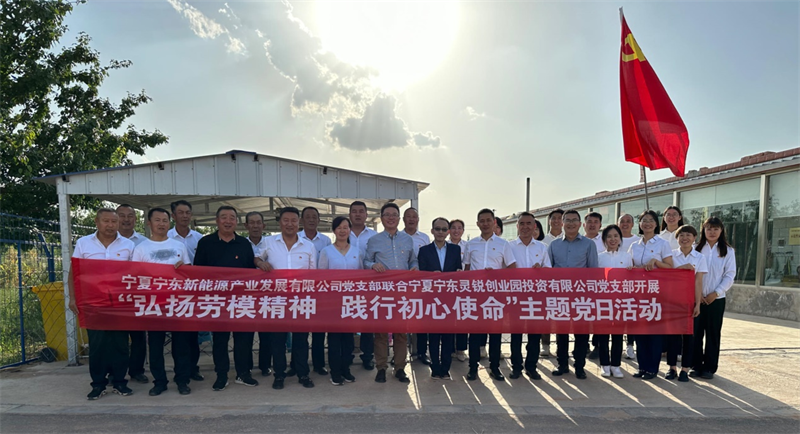 为深入学习习近平总书记在全国劳动模范和先进工作者表彰大会上的重要讲话精神,大力弘扬劳模精神、劳动精神、工匠精神,进一步增强“四个意识”、坚定“四个自信”、做到“两个维护”,近日,宁东新能源产业发展有限公司党支部联合宁东灵锐创业园投资有限公司党支部赴宁东镇东湾村全国劳模顾芸香同志治沙基地开展“弘扬劳模精神 践行初心使命”主题党日活动。