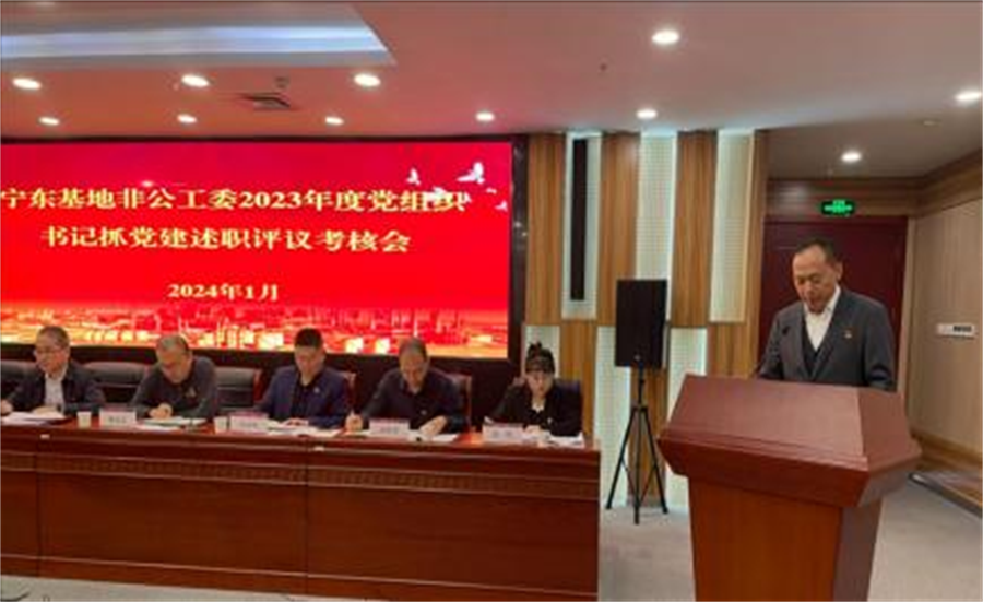 2023年,宁东基地非公工委坚持以习近平新时代中国特色社会主义思想为指导,深入贯彻党的二十大和习近平总书记视察宁夏重要讲话指示批示精神,认真落实自治区第十三次党代会和历次全会各项部署,因地制宜抓好非公党建工作,不断为宁东基地二次创业和高质量发展注入“新动能”。近日,宁东基地非公工委召开2023年度基层党组织书记抓党建述职评议会,非公工委委员、各非公企业党支部书记、党建工作指导员40人参加会议。
