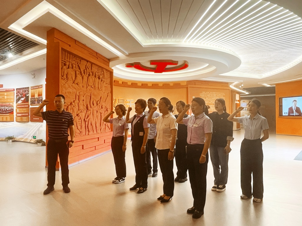 共同参观,重温誓词。在主题教室通过观看文字、照片、实物等资料,了解社会主义波澜壮阔的历史进程、新时代中国特色社会主义的实践探索,回顾宁东基地发展历程和取得的丰硕成果,进一步体悟“社会主义是干出来的”伟大号召的深刻内涵。党支部书记带领全体党员重温入党誓词,铿锵有力的誓词,震撼人心,让大家在重温入党誓词中守初心、担使命,牢记自己对党的庄严承诺和坚定信仰,永葆共产党员的政治本色。