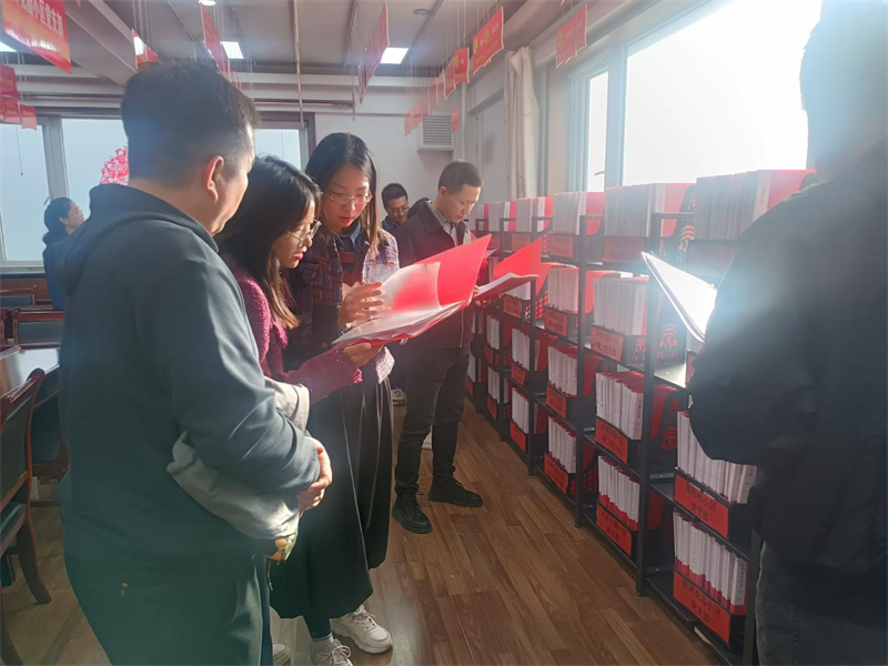 ——在党员活动室,现场学习党员管理经验、仔细翻阅党员活动档案