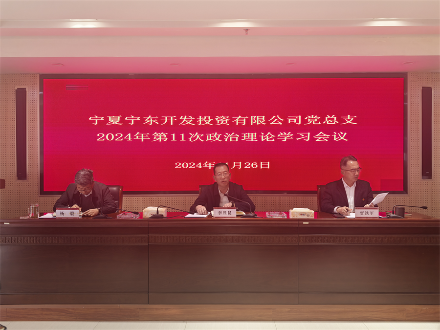 11月26日,宁东开发投资公司党总支召开2024年第11次政治理论学习会议,传达学习习近平总书记近期重要讲话和重要指示批示精神,通报宁东基地2025年工作务虚会会议精神,分析研判当前公司面临的形势和存在的问题,谋划布局公司2025年重点工作。会上,开展了意识形态领域应知应会知识专题测试,公司本部全体干部职工、各子公司主要负责人及相关部门人员等80余人参会。