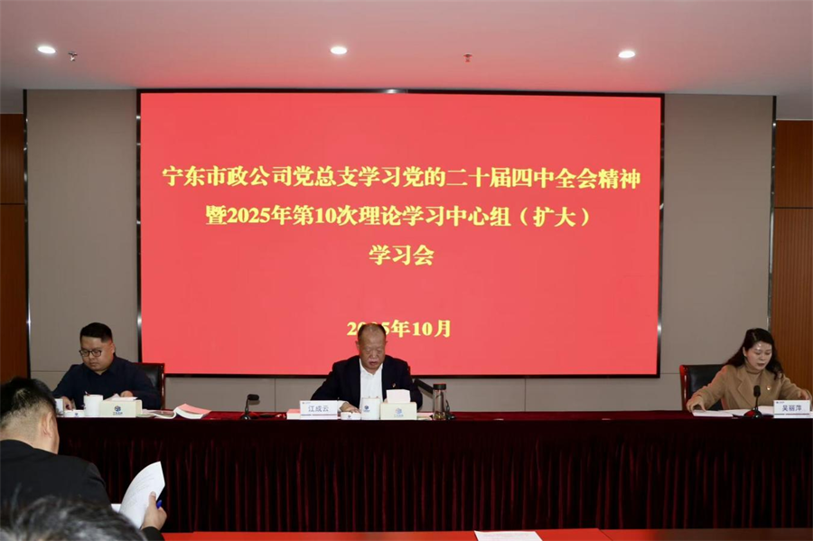 10月27日,宁东市政公司党总支召开2025年第10次理论学习中心组(扩大)学习会议,及时传达学习党的二十届四中全会精神,集中观看相关视频,并就公司学习宣传贯彻工作作出部署。公司党总支班子成员、各部门及子公司全体党员、入党积极分子等60余人参加会议。