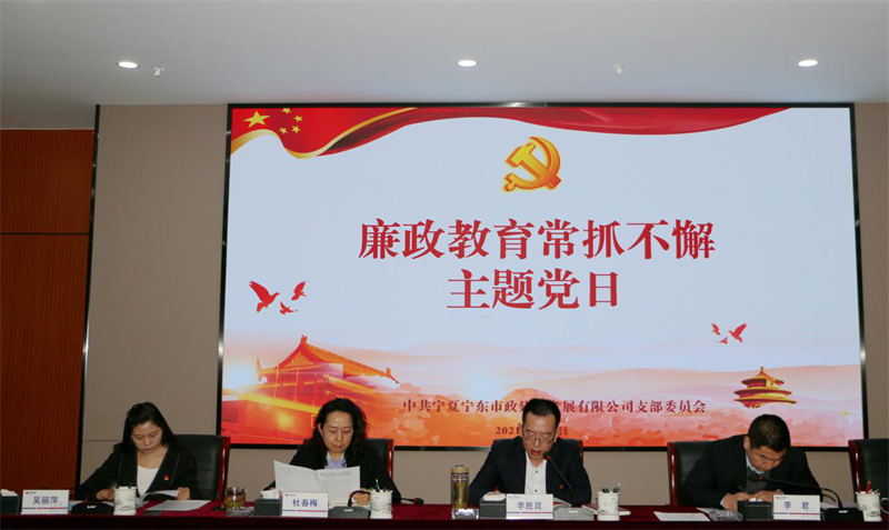 为确保党员干部职工廉洁过节,推进“不敢腐”“不能腐”“不想腐”在公司全覆盖。2月8日,宁东市政公司党支部按照派出宁东基地纪检监察工委工作要求,开展“廉政教育常抓不懈”主题党日活动。