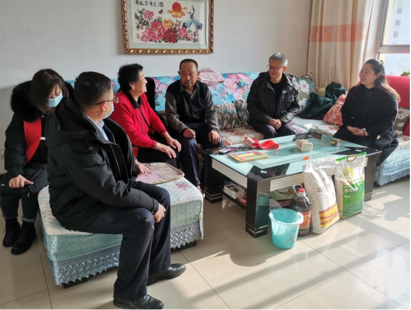 二是走访慰问,送温暖。由宁东基地服务大厅党支部委员及党员代表组成的慰问组深入走访慰问贫困户和春节期间大厅值班人员,为他们送上节日慰问品,带去新春的美好祝福以及党和政府的温暖与关怀。慰问组逐一走访了困难群众,每到一户,都与困难群众亲切交谈,详细了解困难群众的家庭情况和身体状况,鼓励他们积极乐观、勇敢的面对生活困难,并为他们送去米、面、油等慰问品以及手写春联、新年的祝福。随后,慰问组走访慰问了春节期间大厅物业、“12345”便民服务热线及大厅窗口值班人员,详细询问各岗位的工作运行情况,代表政务中心对春节期间仍值守在一线岗位的工作人员致以诚挚的问候和节日的祝福,并向他们送去慰问品。同时,叮嘱大家认真做好安全保卫、后勤保障和疫情防控等工作,确保春节期间各项工作正常运转,保障群众平安祥和地度过新春佳节。