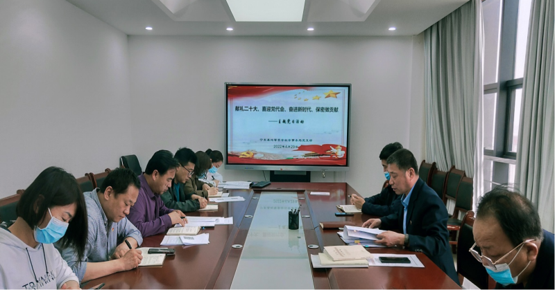 为增强保密意识,以实际行动推动第34个保密宣传教育月活动的开展,近日,宁东基地管委会社会事务局以“献礼二十大、喜迎党代会、奋进新征程、保密做贡献”为主题,开展主题党日活动。