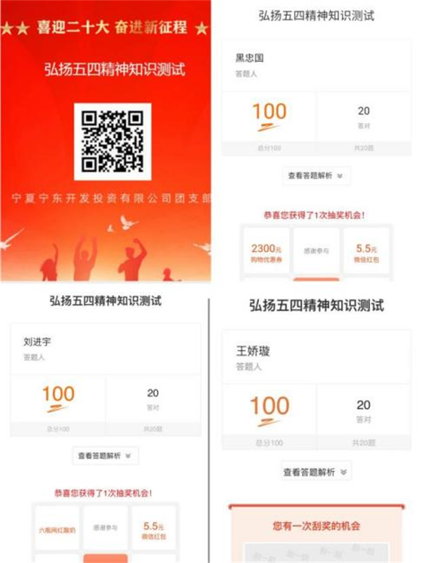 庆祝中国共青团成立100周年之际,宁东开发投资公司团支部还组织开展了以“喜迎二十大 奋进新征程”为主题的系列活动,通过重温入团誓词、开展弘扬“五四”知识测试、参与网上主题团课等活动,营造了浓厚的团史团情学习氛围,引导团员青年感悟党领导青年运动的光辉历程,坚定理想信念,激发担当奋进意识。