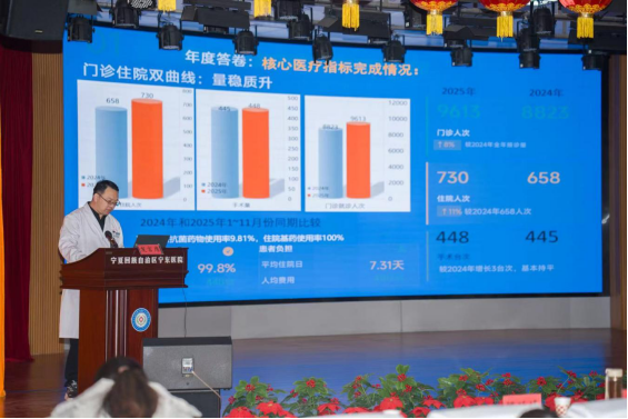 宁东医院党委书记全面总结了2025年医院在党建引领、应急救援、基本医疗、健康管理、医院等级评审等工作,并对各科室述职情况集中点评。同时就2026年重点工作进行部署,强调院班子要聚焦主责主业,优化学科布局,提升医疗服务能力与患者就医体验,切实彰显公立医院的公益性;认真履行“一岗双责”,抓好分管领域全面从严治党与党风廉政建设。会议要求各科室以患者为中心,加强学科建设,推行精细化管理,加大人才培养力度,提升科室管理和服务能力,推动形成职能科室主动服务临床、临床科室主动服务患者的良好氛围。