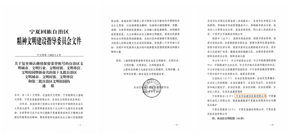 近日,宁东市政建设发展有限公司喜获“新命名的第十九批自治区文明单位”荣誉称号,这是公司自2021年荣获“自治区精神文明建设工作先进集体”荣誉称号之后的又一殊荣。