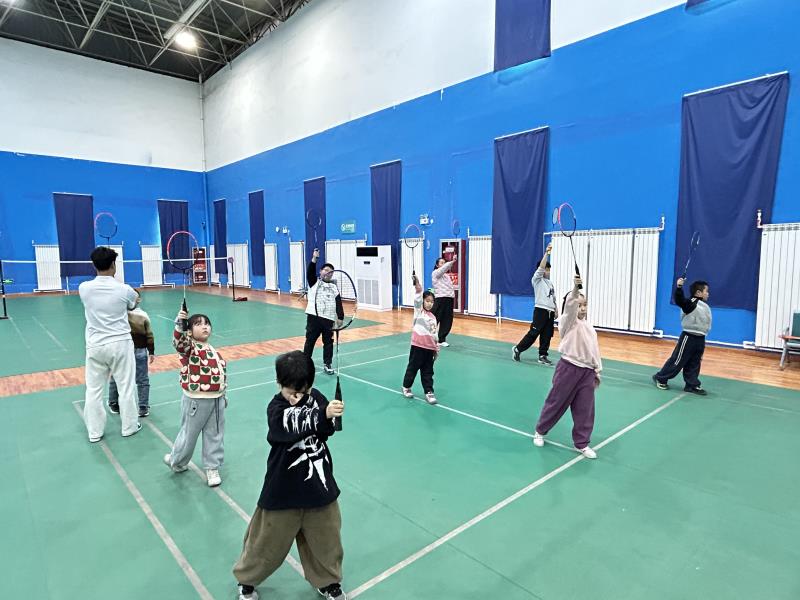 宁东体育馆:孩子们在学习打羽毛球