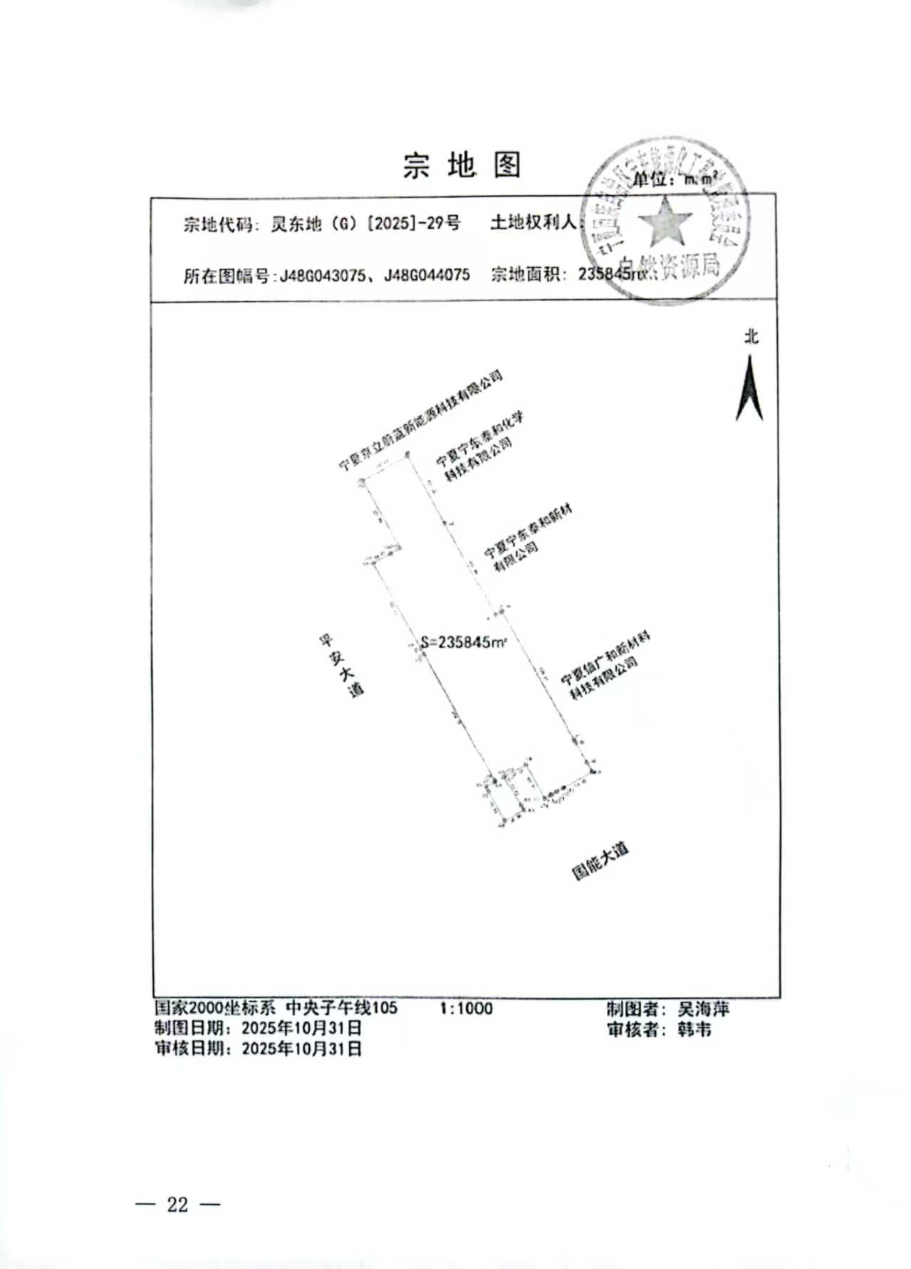 宁夏加能煤基新材料有限公司于2026年1月21日签订《国有建设用地使用权出让合同》(编号:灵东地(G)[2025]-29号),该宗地位于宁东基地现代煤化工产业园区国能大道北侧、平安大道东侧,在不动产地籍调查过程中,该宗地北邻宁夏京立蔚蓝新能源科技有限公司未按期履行指界义务及权利。