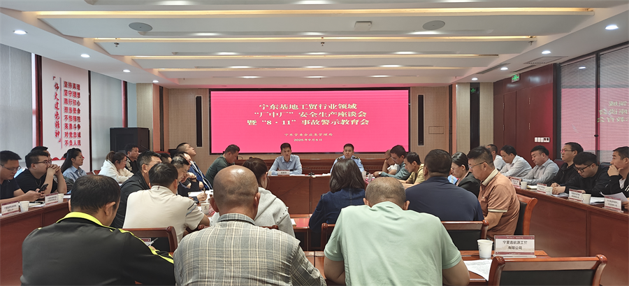 2025年9月5日上午,宁东应急管理局组织召开宁东基地工贸行业领域“厂中厂”安全生产座谈会暨事故警示教育会,43家企业主要负责人参会。