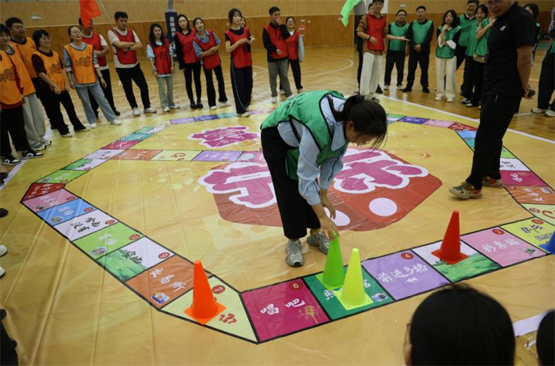 活动任务体系丰富多元,“团队挑战”方面,要求队员高度协作,共同完成如“动力圈”“穿越雷阵”等协作游戏,或进行富有创意的团队造型拍摄,快速提升干部职工的默契与信任。“智慧闯关”方面,灵活设置了T字之谜、魔方还原、智力扣解锁、主题拼图等益智游戏供现场随机抽取,考验干部职工的逻辑思维与解决问题能力。“运动健身”方面,包含若干充满趣味的体能挑战,如叉腿接力、平衡挑战等,促进干部职工强健体魄;“音乐竞赏”方面,为有特长的干部职工提供了展示风采的舞台。完成任务即可获得相应奖励,作为队伍产业积累的基础。为增强活动的策略深度与趣味性,整体机制不局限于完成任务,还设置了“政策扶持卡”“弹性供地”竞拍以及“股权投资”等产业互动环节,模拟市场经济动态,要求干部职工不仅要善于完成具体任务,更需具备战略眼光、资源分配和风险决策能力,进一步提升了活动的对抗性和沉浸感。