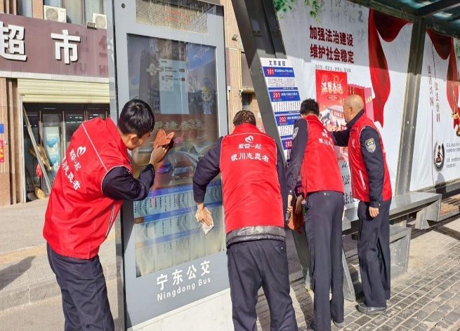 联合国能宁煤煤炭化学工业技术研究院、宁夏银行宁东支行、泰畅水务公司等,发动青年志愿者为独居老人提供上门保洁服务,化身“暖心助老员”;清理小广告及杂物堆放,化身“环境美容师”;在交通路口开展文明劝导并发放移风易俗宣传彩页,化身“文明宣传员”,凝聚共建共治合力,助力社区共建共治共享再上新台阶。
