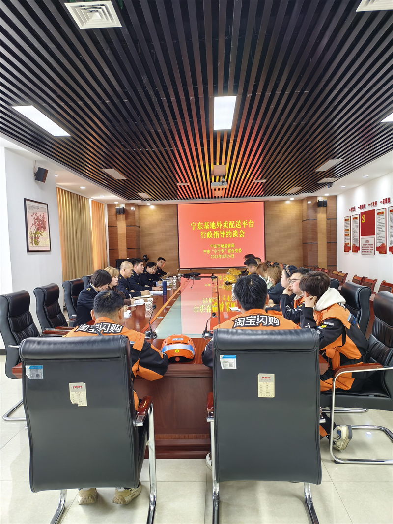 为深入贯彻食品安全“四个最严”要求,压紧压实外卖平台“守门员”责任,进一步规范网络食品经营秩序,全力解决好人民群众身边的操心事、烦心事,2026年3月24日,宁东市场监管局联合宁东“小个专”综合党委组织召开外卖平台行政指导约谈暨新就业群体宣讲座谈会。美团、淘宝闪购、京东秒送等3家平台区域负责人、管理人员及配送骑手代表参加会议。