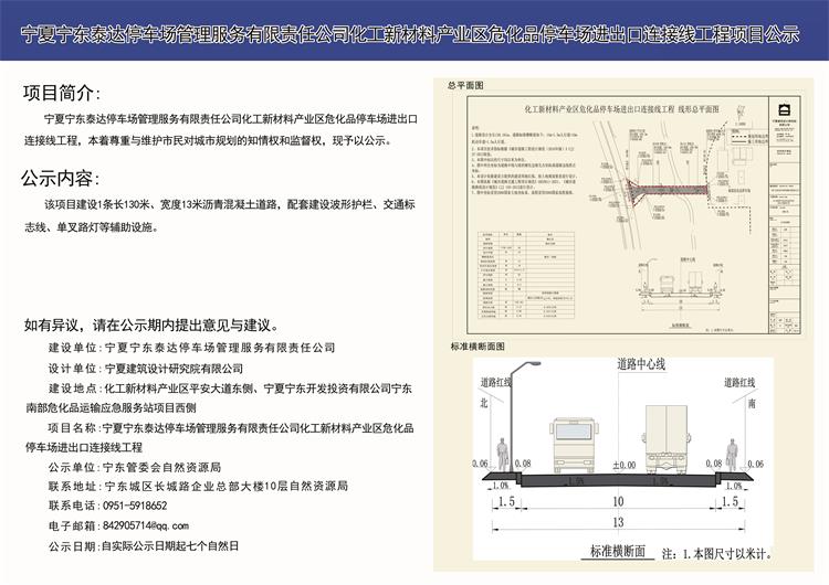 宁夏宁东泰达停车场管理服务有限责任公司化工新材料产业区危化品停车场进出口连接线工程项目规划批前公示图