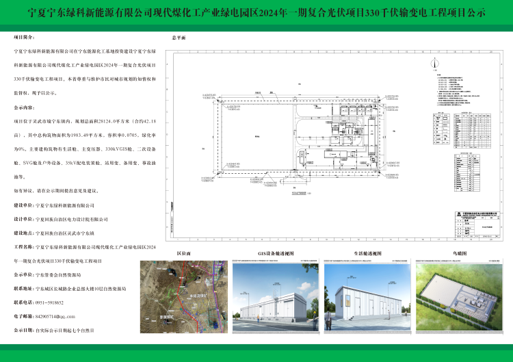宁夏宁东绿科新能源有限公司现代煤化工产业绿电园区2024年一期复合光伏项目330千伏输变电工程规划批前公示图