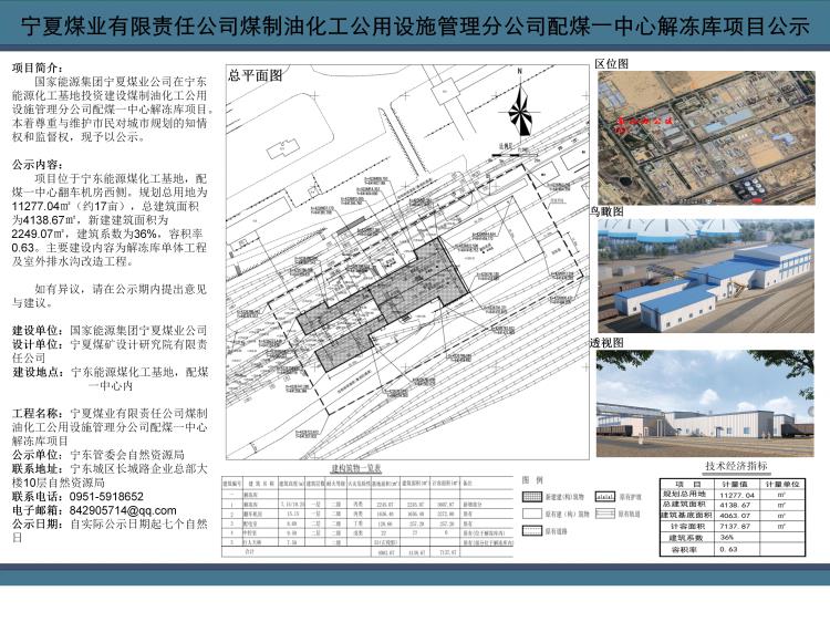 宁夏煤业有限责任公司煤制油化工公用设施管理分公司配煤-中心解冻库项目规划批前公示图