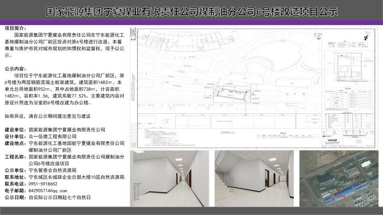 国家能源集团宁夏煤业有限责任公司煤制油分公司6号楼改造项目规划批前公示图