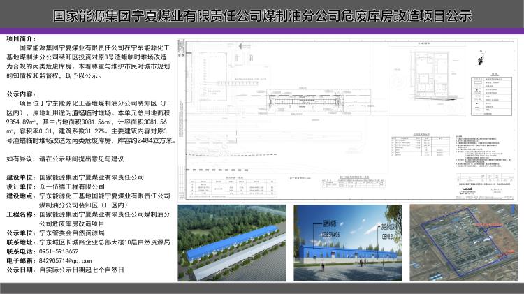 国家能源集团宁夏煤业有限责任公司煤制油分公司危废库房改造项目规划批前公示图