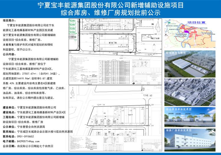 宁夏宝丰能源集团股份有限公司新增辅助设施项目(维修厂房和物资库房) 规划批前公示图