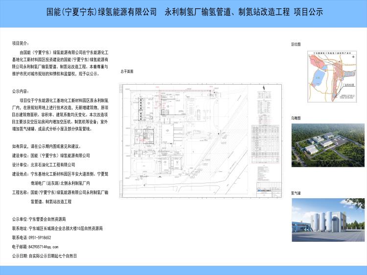 国能(宁夏宁东)绿氢能源有限公司永利制氢厂输氢管道、制氮站改造项目规划批前公示图