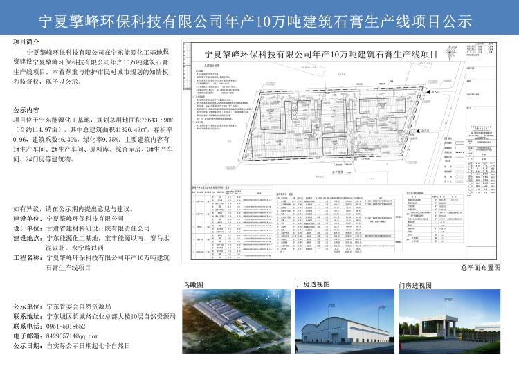 宁夏擎峰环保科技有限公司年产10万吨建筑石膏生产线项目进行规划公示图
