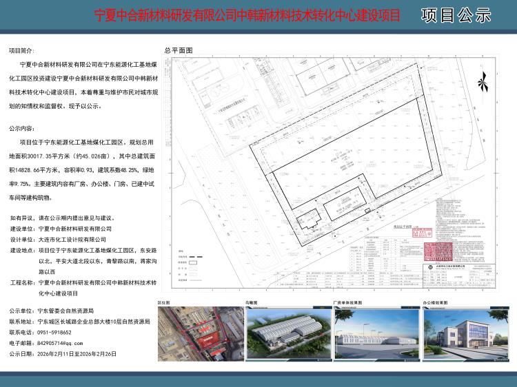 宁夏中合新材料研发有限公司中韩新材料技术转化中心建设项目规划批前公示图