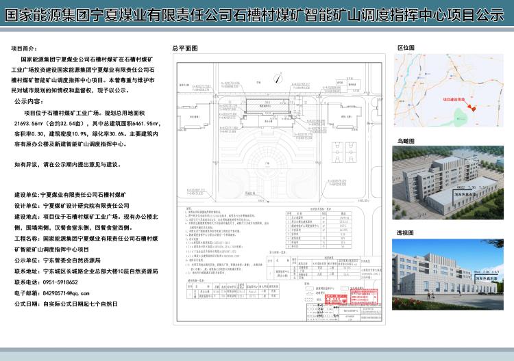 国家能源集团宁夏煤业有限责任公司石槽村煤矿智能矿山调度指挥中心项目规划批前公示图