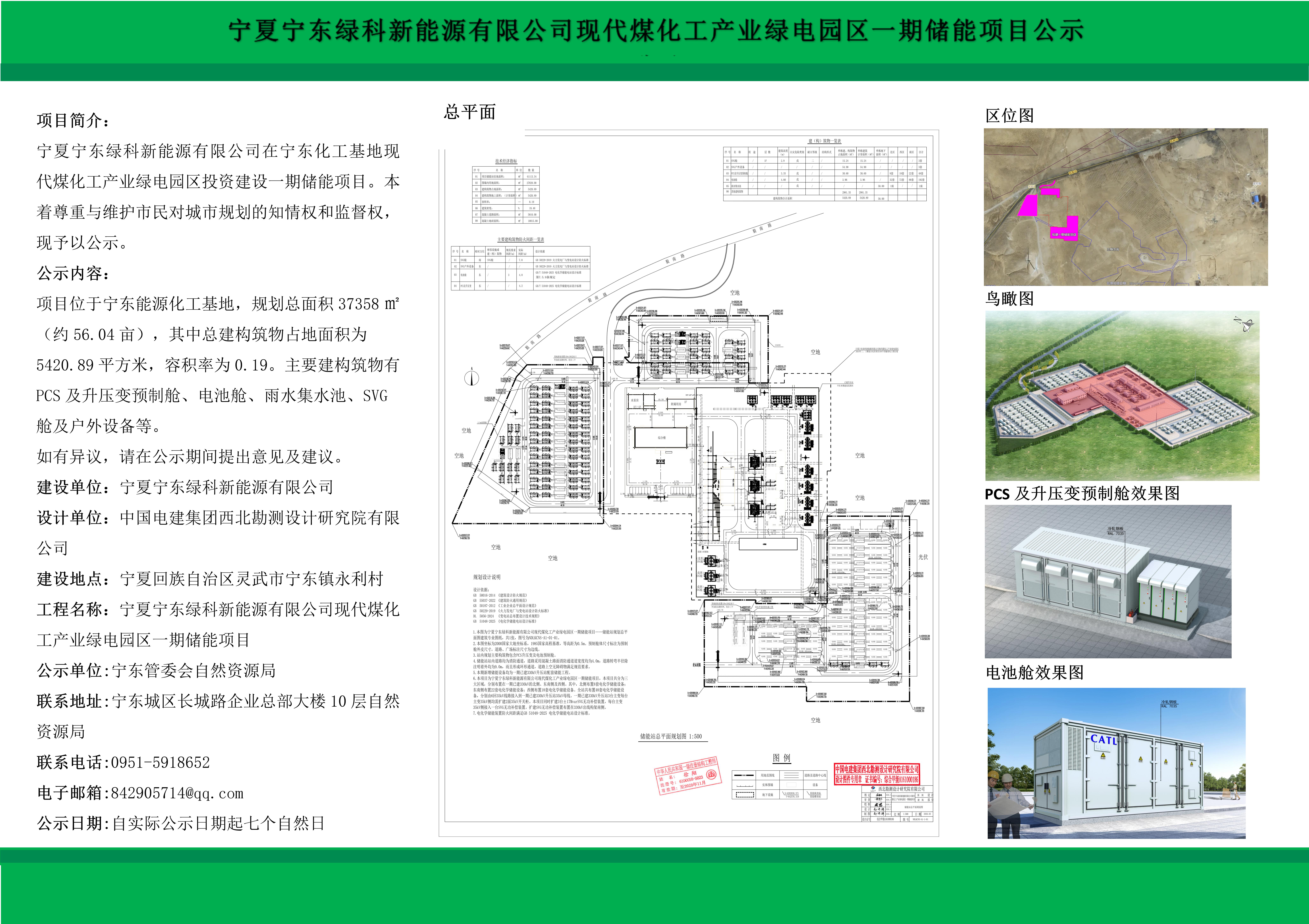 宁夏宁东绿科新能源有限公司现代煤化工产业绿电园区一期储能项目规划批前公示图