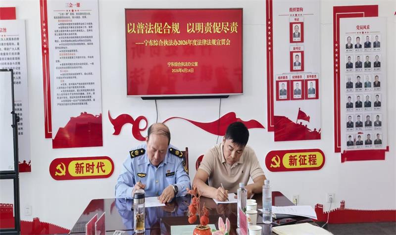 4月14日,宁东综合执法办组织召开“以普法促合规,以明责促尽责”为主题的2026年度法律法规宣贯会,执法办主要负责人、各执法领域负责人及业务骨干,宁东镇各村主要负责人参加宣贯会。
