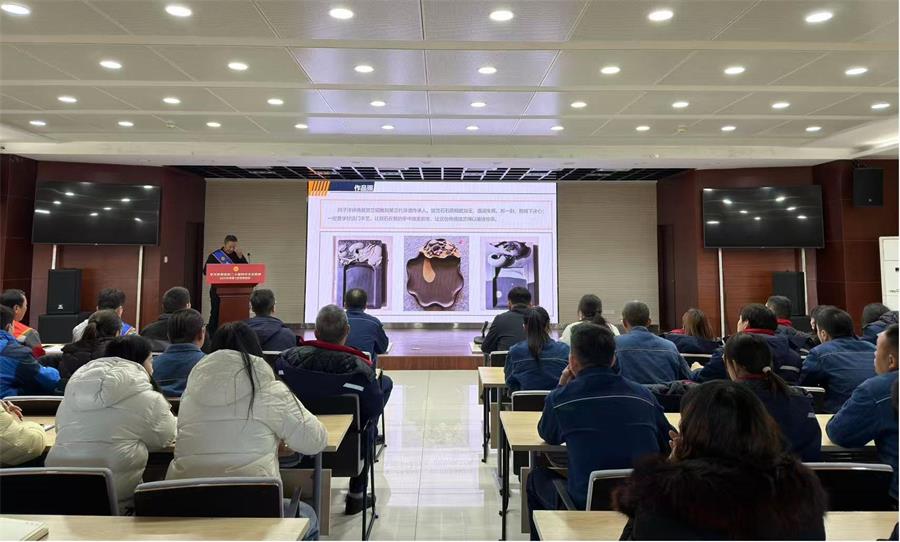宁夏地质博物馆科员石飚,既是深耕地质领域的专业从业者,也是传承贺兰砚非遗技艺的“塞上工匠”。他将地质人的坚韧执着与非遗技艺的文化底蕴深度融合,在宣讲中分享了自己与贺兰砚相伴的岁月。每一刀雕琢都追求毫厘不差,每一件作品都凝聚文化思考,他以“执着专注、精益求精”的坚守,让沉寂的贺兰石在新时代焕发新生。其创作的贺兰砚作品不仅是工艺珍品,更成为跨越山海的文化使者,生动诠释了中华文脉的赓续传承,让现场职工深刻体会到“坚守方能致远,传承即是担当”的深刻内涵。