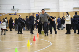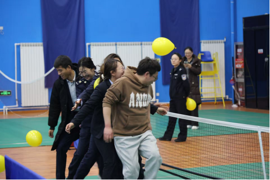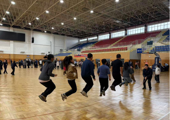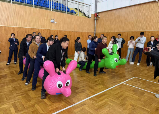 活动现场气氛热烈、欢声笑语不断。大家全身心沉浸在欢乐祥和的氛围之中。团体项目备受追捧、人气爆棚,成为全场焦点。“绳彩飞扬”(多人跳绳)项目中,8名队员步调一致、配合默契,长绳在空中划出优美弧线,大家轻盈跳跃、节奏整齐,呐喊声与跳绳声交织在一起,尽显团队默契;“协力先锋号”(趣味毛毛虫)项目里,5名队员并肩前行、齐心协力,喊着统一的口号稳步向前,既考验协作能力,又充满欢乐趣味,引得现场掌声不断;王者荣耀比赛中5名队员默契配合,勇争第一;动力火车(夹球协力竞走)项目中队员们心往一处想、劲往一处使,在协作中增进情谊,在配合中凝聚力量。