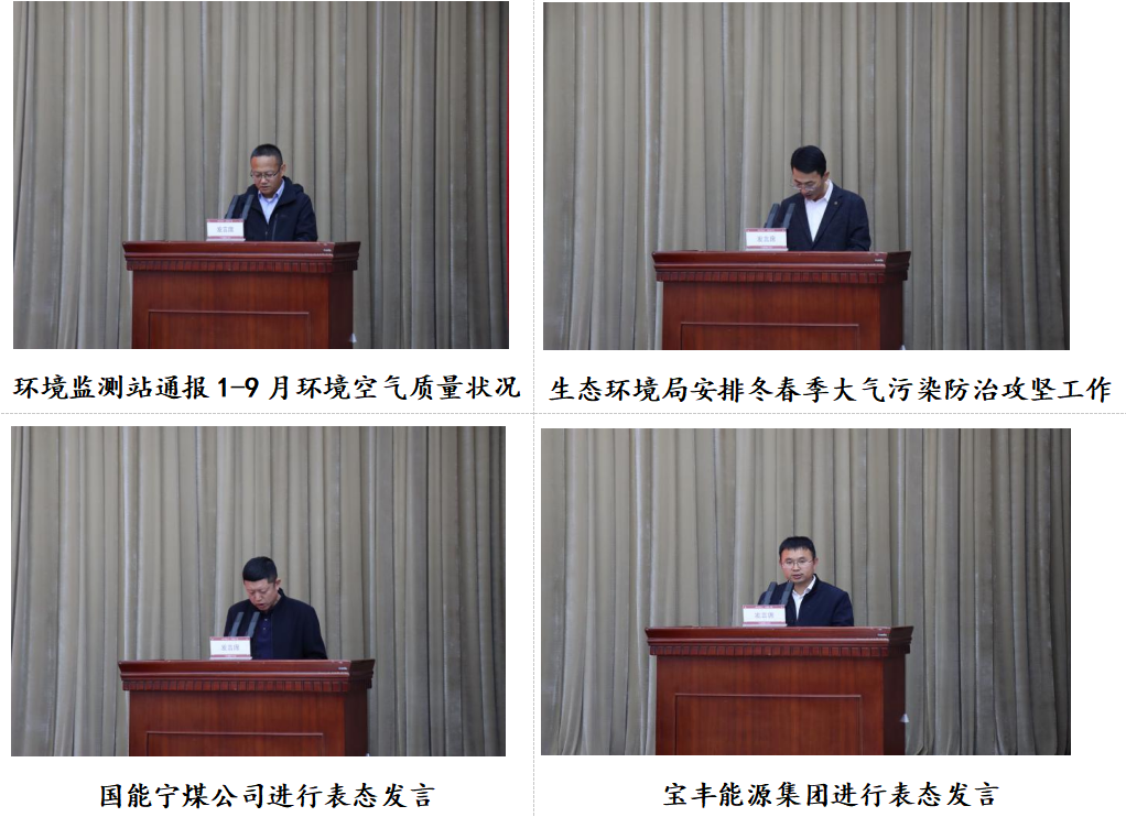 会上,宁东基地环境监测站通报了2025年宁东基地1-9月环境空气质量状况,对今冬明春环境空气质量形势进行分析研判;管委会生态环境局通报2025年宁东基地大气污染防治重点工作完成情况,就冬春季大气污染防治攻坚工作作具体安排部署;宝丰能源、国能宁煤2家企业分别就煤场封闭、燃气锅炉低氮燃烧改造、VOCs治理和焦化行业超低改造、清洁运输等重点任务完成进行了表态发言。