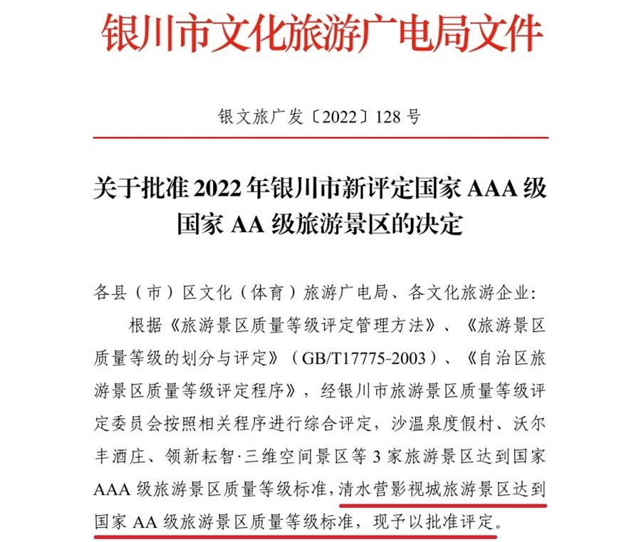 近日,银川市文化旅游广电局正式批准宁东镇清水营影视城为国家AA级旅游景区,成为宁东镇首家国家星级旅游景区。