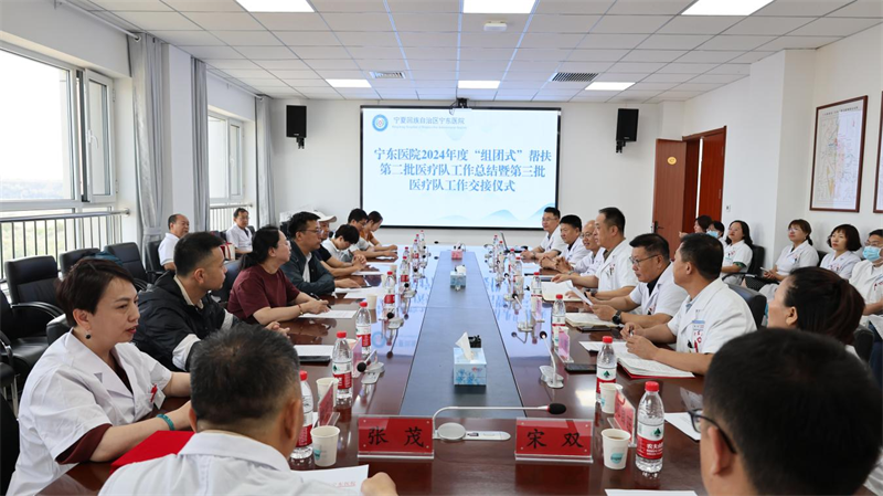 按照《自治区党委组织部等关于印发〈“组团式”帮扶国家乡村振兴重点帮扶县人民医院和自治区薄弱县(区)公立医院工作方案〉的通知》要求, 6月25日,银川市第一人民医院第三批“组团式”帮扶医疗队进驻宁东医院,与第二批医疗队完成了交接,接续两院业务帮扶工作。