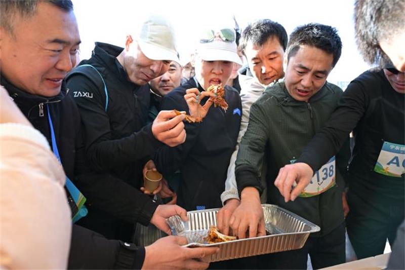 上午九点半,发令声响,选手们从宁东镇长征路出发,踏上全程约10公里的奔跑旅程。赛道沿途补给站配备充足的水与能量食品,为选手持续注入活力。完赛区不仅为参赛者准备了定制奖牌,还设有免费的“嘉年华式”体验区。趣味游戏互动区推出套圈、沙包投掷等经典项目,美食区则汇聚烤全羊、特色面食等10余家风味补给小店,让选手在轻松愉悦的氛围中共享运动与美食之乐。不少参赛者表示,本次健身跑更像一场盛会,不仅锻炼了身体,更在奔跑中深切感受到宁东的发展底蕴与生活温度。