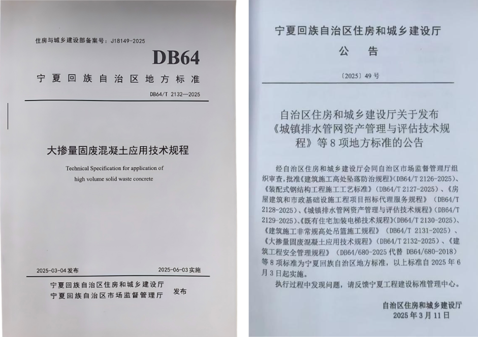 绿色发展,标准先行。在“双碳”目标引领下,由宁东基地企业宁夏新丰益节能科技有限公司牵头主编的《大掺量固废混凝土应用技术规程》(DB64/T 2132—2025)经批准发布。该标准填补了宁夏在大掺量固废混凝土应用领域的空白,是宁东基地以科技创新引领绿色转型的实践。